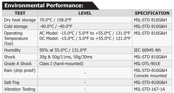 MIL-STD, IEC 등 다양한 군·해양 환경 인증을 모두 통과한 극한 환경 대응 디스플레이입니다.