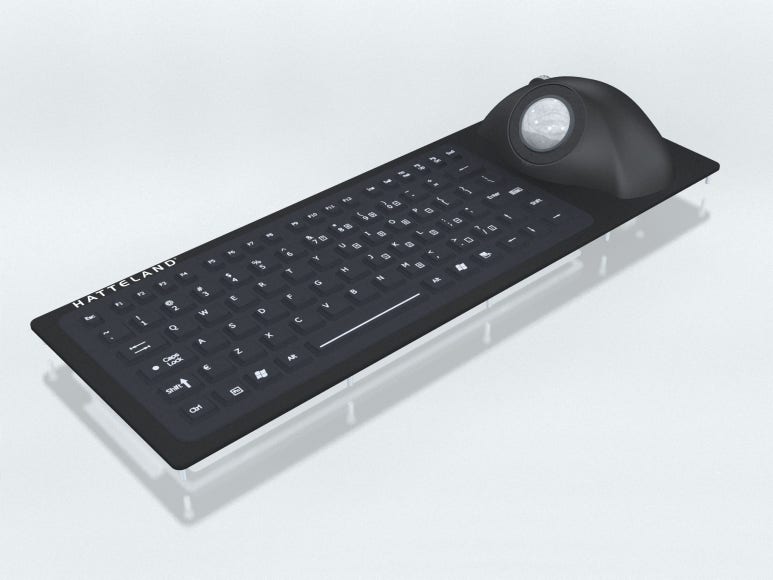 이 제품은 85키 풀 트래블 고무 키보드와 방수 트랙볼이 통합된 장치로,
